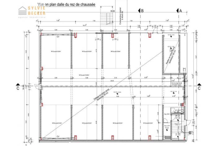 Surface totale 465.63m2. Loyer mensuel 3.728 Euro plus charges.