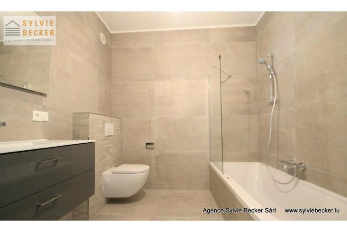 Appartement moderne de 2 chambres avec grande terrasse orientée sud situé dans un immeuble à Strassen datant de 2016.
