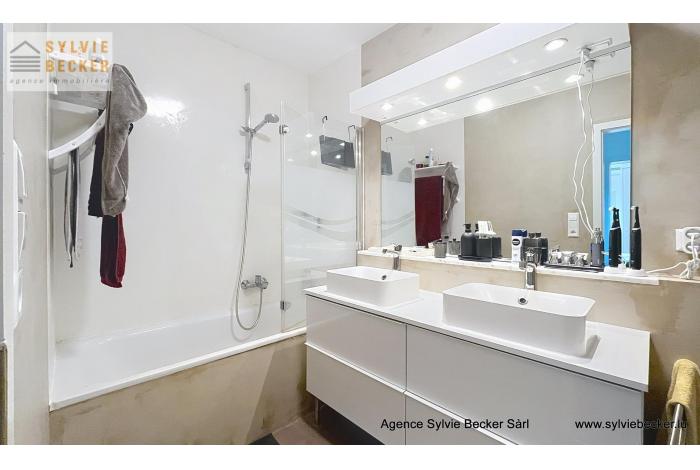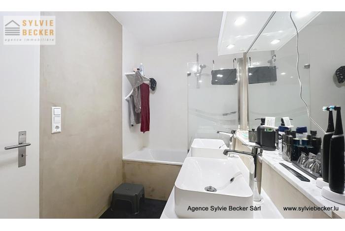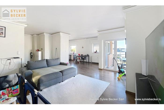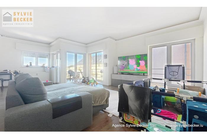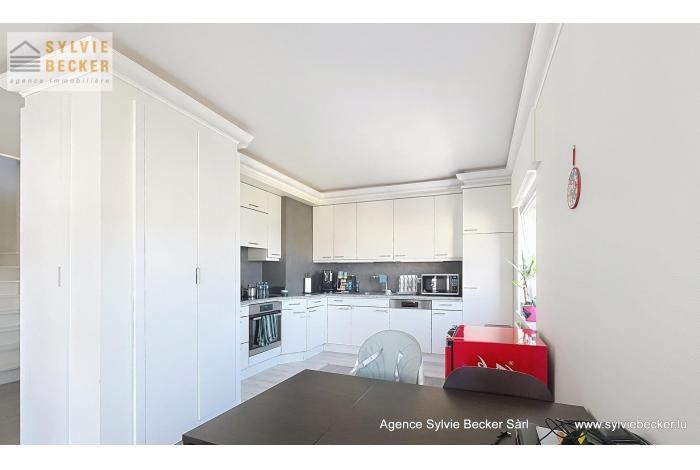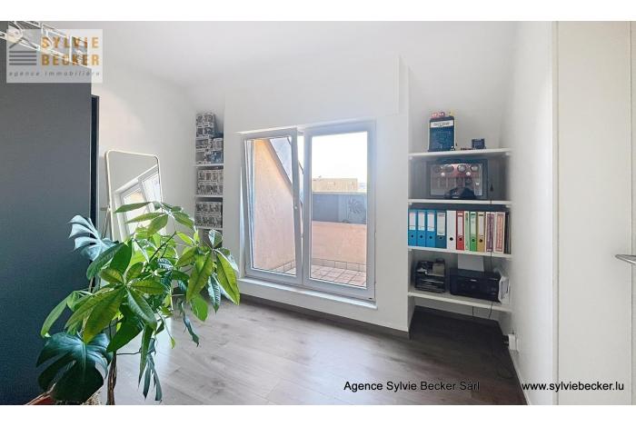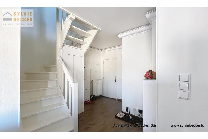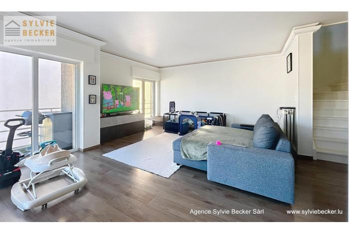 Appartement-duplex lumineux de 115m2 + terrasse en plein centre de Bascharage, dans rue calme sans issue. Non meublé, cuisine bien équipée, avec placards encastrés, luminaires dans toutes les pièces, et contenant machine à laver / sèche-linge dans la cuisine (emplacement supplémentaire disponible à la cave).