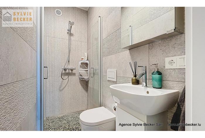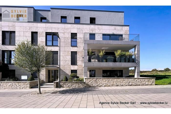 Appartement récent (2015) de 2 chambres, 2 salles de douche, avec une grande terrasse de 29m2, au sein d'un immeuble situé dans la Cité Pescher à Strassen.