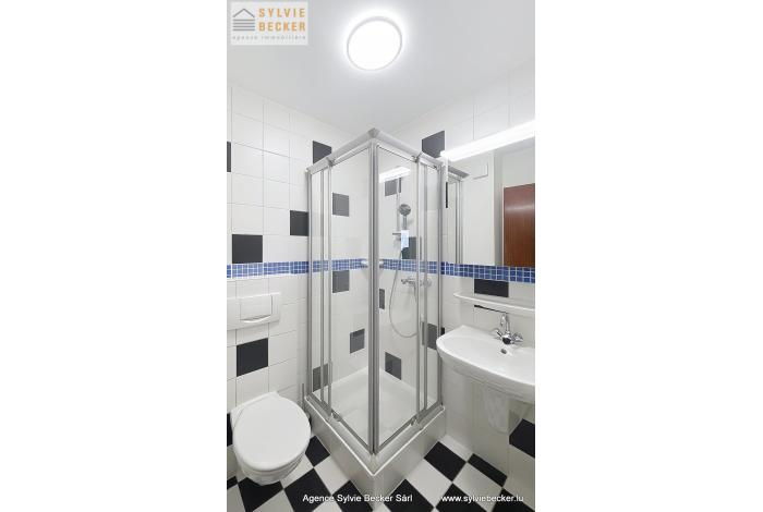 Studio meublé de 34m2, situé au 63 route de Luxembourg, avec balcon et parking en plein centre de Walferdange/Bereldange. Il est idéalement située avec accès rapide et facile aux transports publics (bus), au réseau autoroutier et à tous commerces.