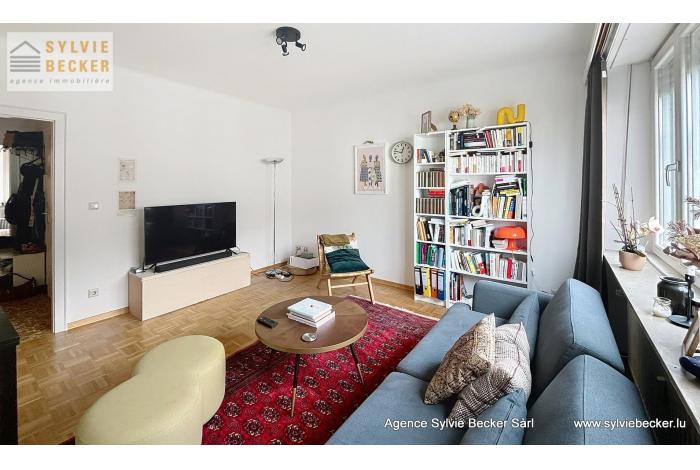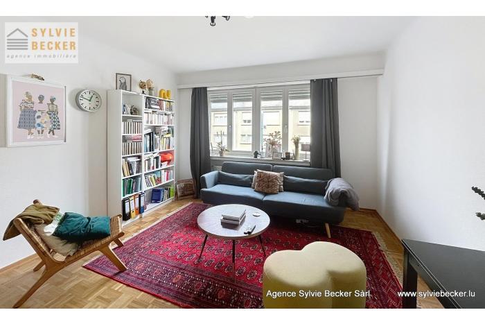 Appartement de 75m2, comprenant deux chambres, une cuisine récente avec accès balcon, situé au 1er étage d'une résidence sans ascenseur au 135, rue de Rollingergrund et à quelques minutes du centre-ville.