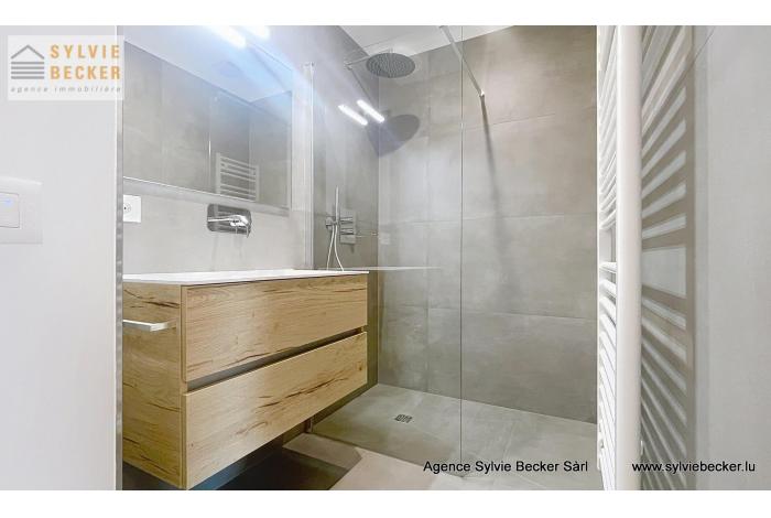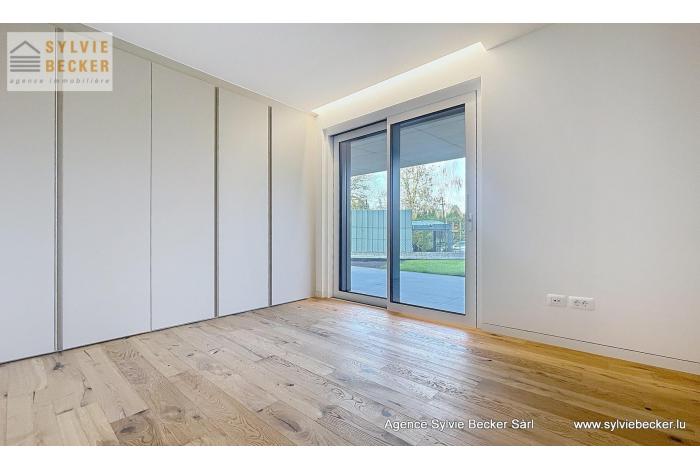 Appartement neuf et moderne de 1 chambre et 1 salle de douche, situé au rez-de-chaussée d'une toute nouvelle résidence à Helmsange (commune de Walferdange), avec une grande terrasse de (46.54m2) et un espace jardin (64.17m2).