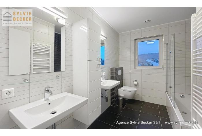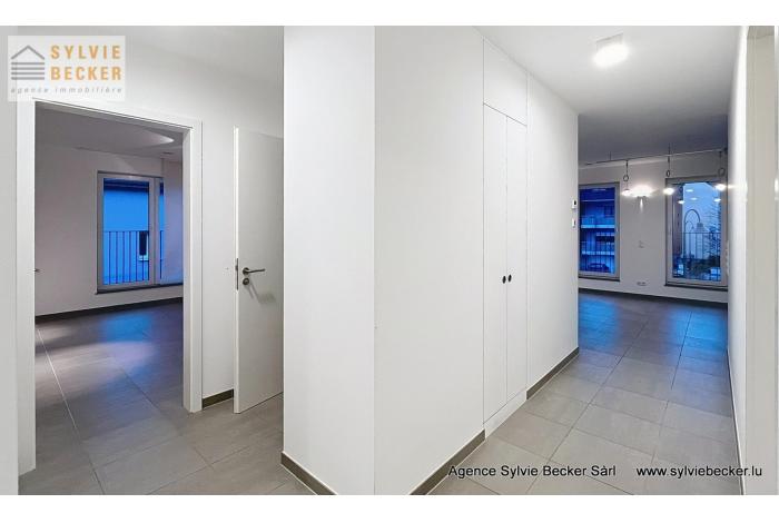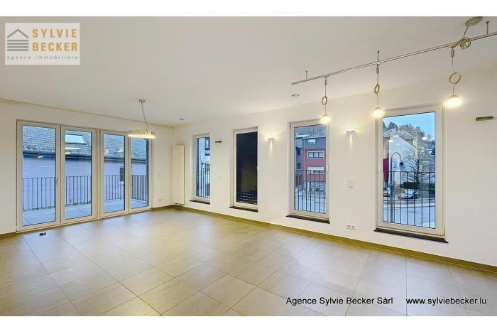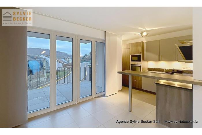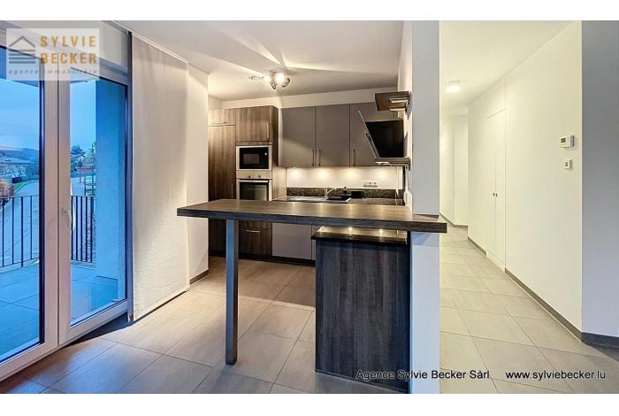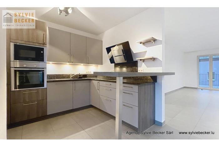 Bel appartement lumineux d'une surface totale de 94 m2, comprenant deux chambres à coucher, un living donnant sur 2 belles terrasses, cuisine équipée ouverte, 1 salle de bains, 1 WC séparé, cave et 2 emplacements. L'appartement se trouve au 1er étage dans une résidence avec ascenseur au 50 Rte de Fischbach, Lintgen, idéalement situé à proximité de Mersch et du réseau autoroutier, à 15 minutes du Kirchberg.