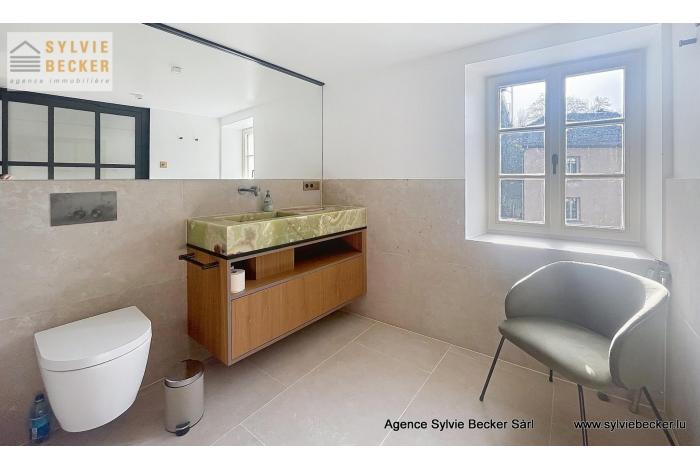 Appartement (duplex) haut de gamme meublé avec 2 chambres à coucher dans une petite résidence de deux unités, situé à 5 Rue des Trois Glands 1629 Luxembourg. L'appartement est entièrement meublé et il a été rénové en 2023. L'appartement se trouve dans une rue calme et sans issue de Pfaffenthal, à 2 minutes de l'arrêt de bus et 500 mètres du funicular.
