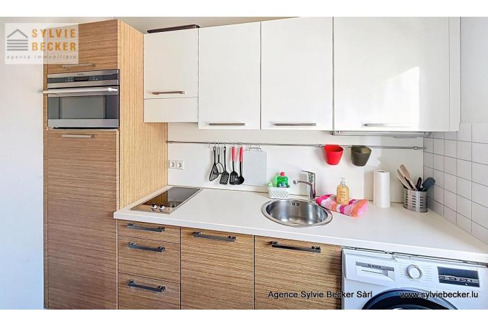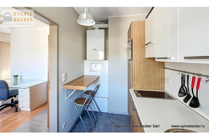 Studio (35 m²) meublé au 3ème ETAGE avec deux pièces de vivre, un balcon (5 m²), un garage box fermé et une cave, sis au 35 Rue de Bourgogne 1272 Luxembourg-Beggen.