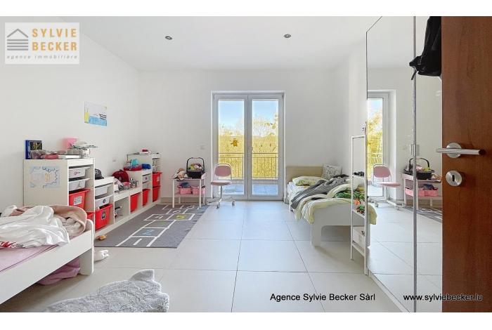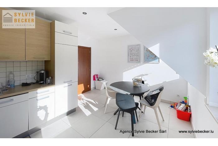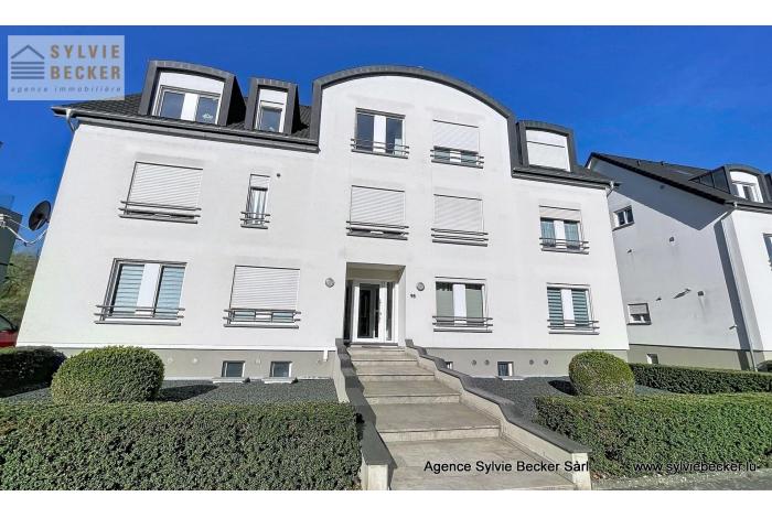 Appartement lumineux et spacieux avec 2 chambres à coucher (15m2 et 14m2) et terrasse (9m2) orientée ouest au deuxième étage d'un bâtiment à Helmdange, dans la commune de Lorentzweiler. Il dispose également un grand garage double pour deux voitures et d'une cave privative au sous-sol, ainsi qu'un grand grenier de 25m2 au troisième étage. L'appartement se trouve à 300m de la gare de Lorentzweiler.
