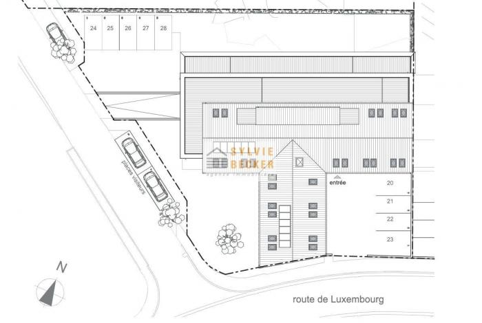 Prix (TVA 17 pourcents) en état brut : 596.129,34 euros (installation chauffage au sol incluse), 3 emplacements (1 intérieur, 2 extérieurs) inclus