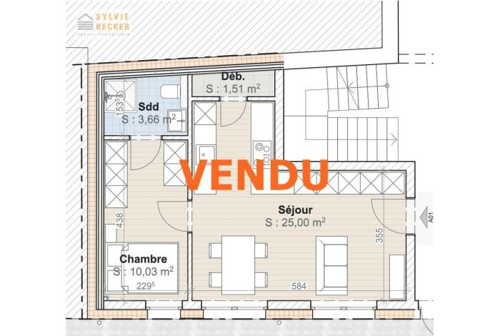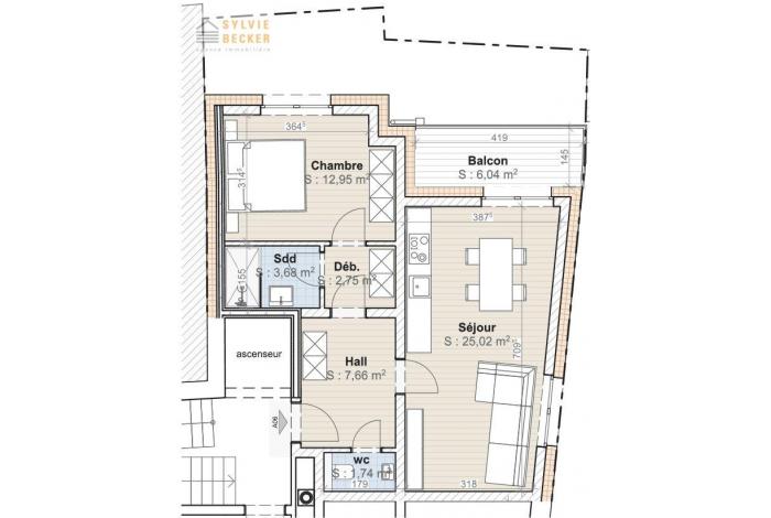 Weighted Surface : 60.68m2 (apartment 54.64m2 + loggia)