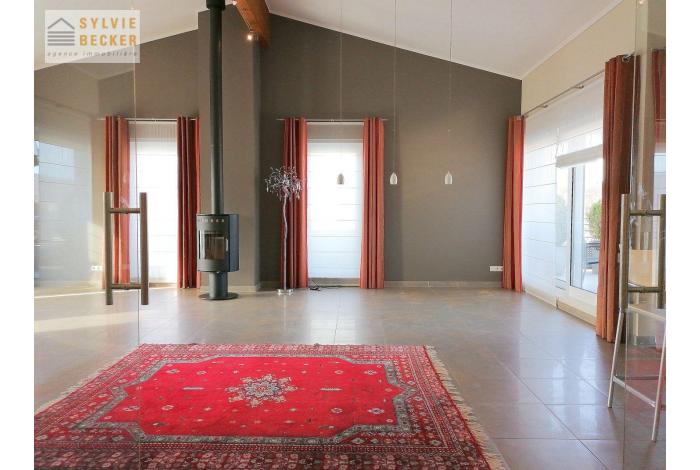 - Living (hauteur plafond 4 mètres) avec accès à terrasse couverte 12m2