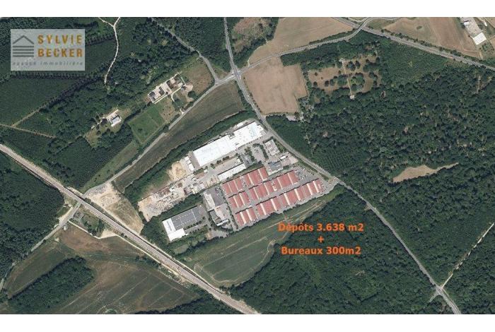 Grand dépôt industriel d'une surface totale de 3.986 m2 (Hall 3.686 + Bureaux 300 m2). Une quarantaine d'emplacements extérieurs devant le dépôt.