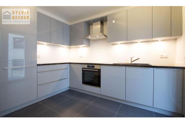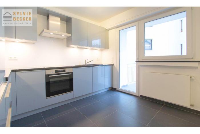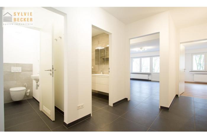 A louer appartement lumineux complètement rénové avec 2 chambres à coucher, living, cuisine équipée séparée, salle de douches, 2 balcons, parking au 3, rue des Glacis à Luxembourg-Limpertsberg.
