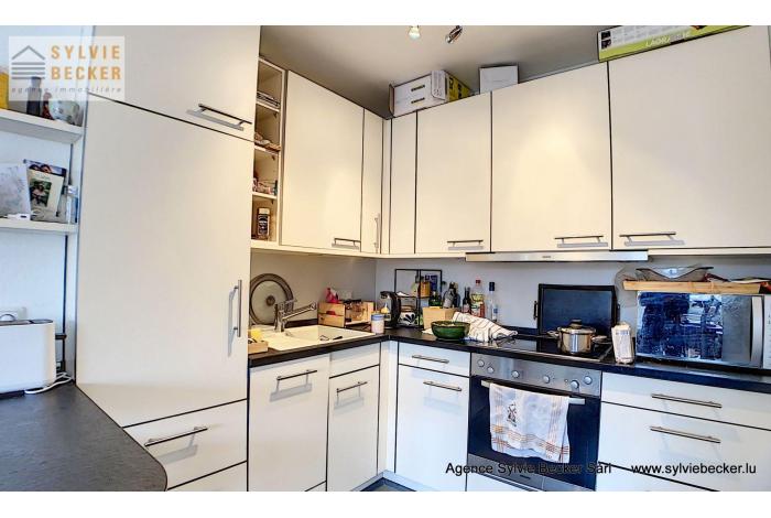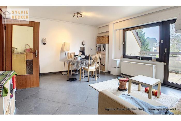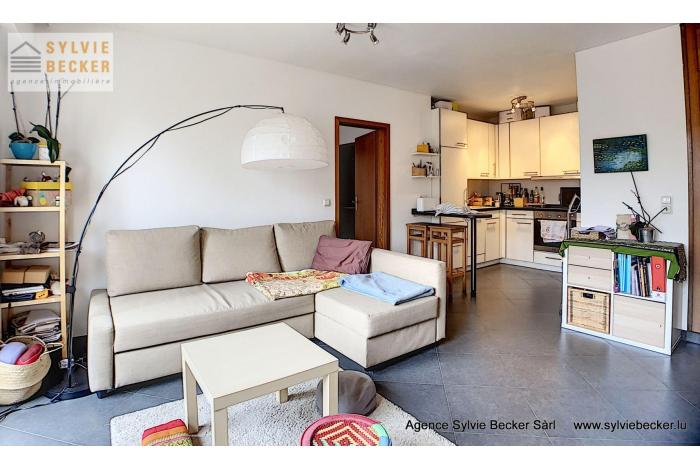 Beautiful flat with one bedroom, balcony and garage, located in a very quiet street in Bereldange at 14b, rue Bour. Located a few minutes walk from all shops and public transport.