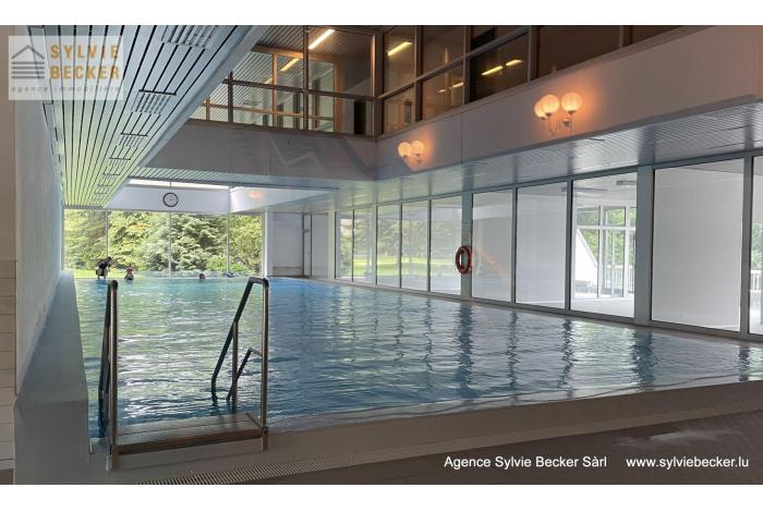 Une belle piscine commune aux résidents de l'immeuble et des commerces (dont une épicerie) se trouvent au rez-de-chaussée du bâtiment.