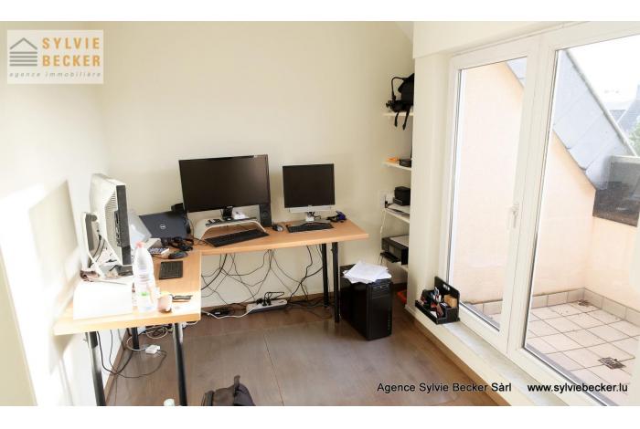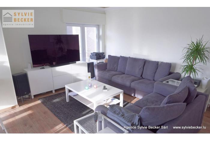Appartement-duplex lumineux de 115m2 + terrasse en plein centre de Bascharage, dans rue calme sans issue. Non meublé, mais à cuisine bien équipée, avec placards encastrés, luminaires dans toutes les pièces, et contenant machine à laver / sèche-linge dans la cuisine (emplacement supplémentaire disponible à la cave).
