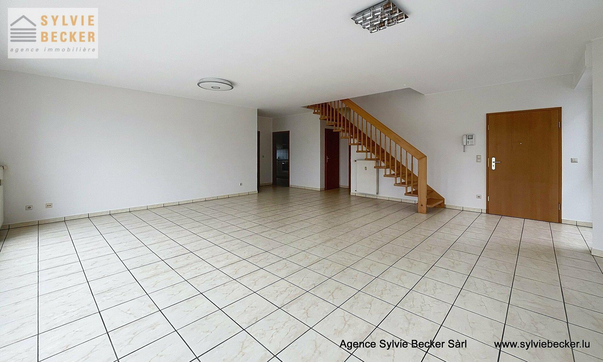 A 16 minutes du Kirchberg, appartement-duplex, lumineux, situé au 2ème et 3ème étage d'une résidence de 4 unités à Lorentzweiler. Il est orienté sud et ouest (arrière du bâtiment), avec superbes vues dégagées et dispose de 5 chambres, 2 terrasses et un jardin commun. À quelques pas de la piste cyclable Luxembourg – Mersch, en pleine vallée de l'Alzette. L'appartement est à proximité des écoles, des crèches, à 50 mètres de l'arrêt de bus et à 6 minutes du Kirchberg via l'autoroute du Nord.