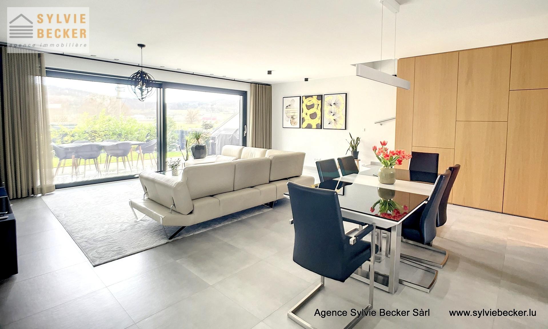 Maison moderne de 2020, aux finitions haut de gamme, située à Hunsdorf (commune de Lorentzweiler), dans un environnement calme et vert. 4 chambres/3 salles de bain.