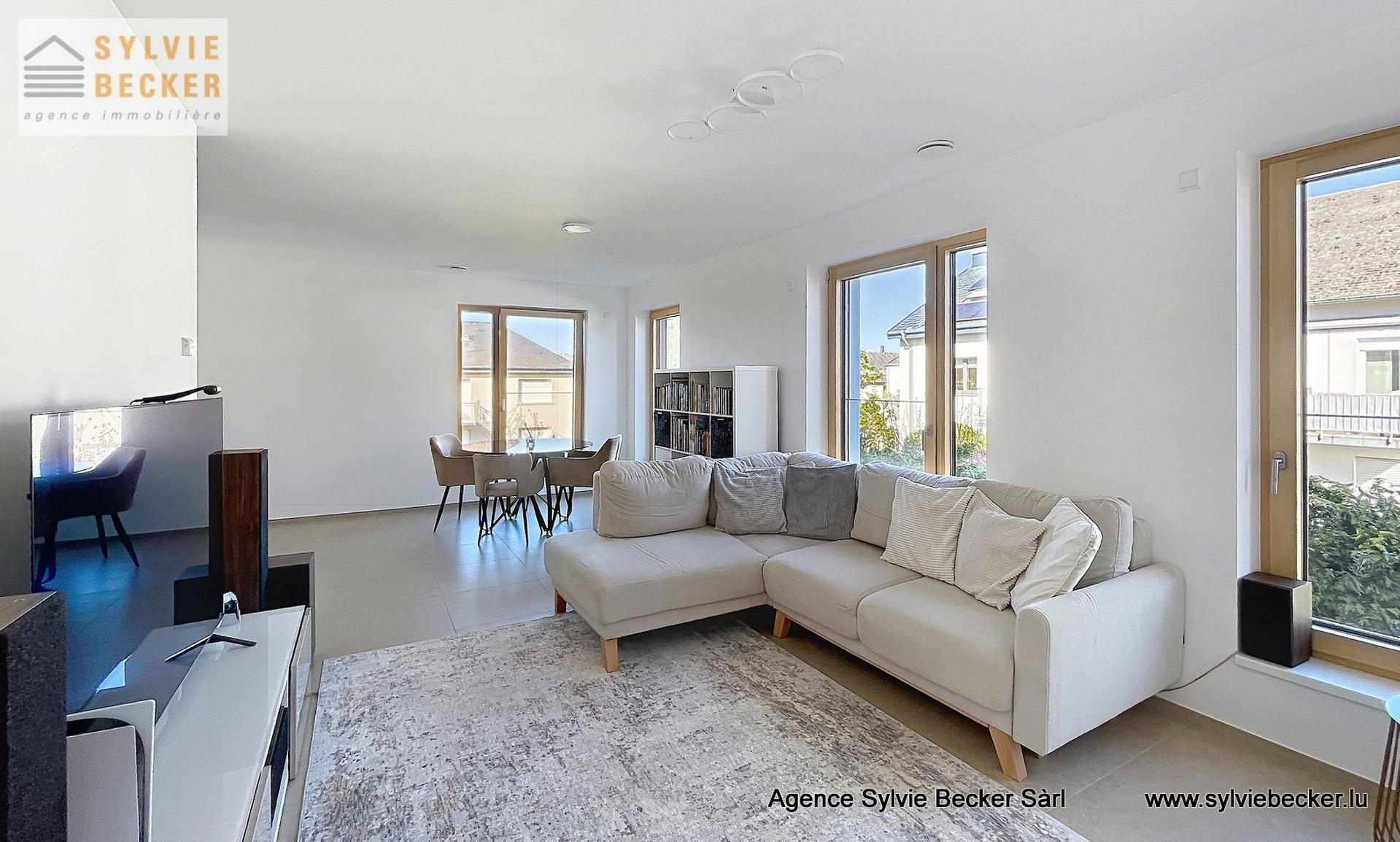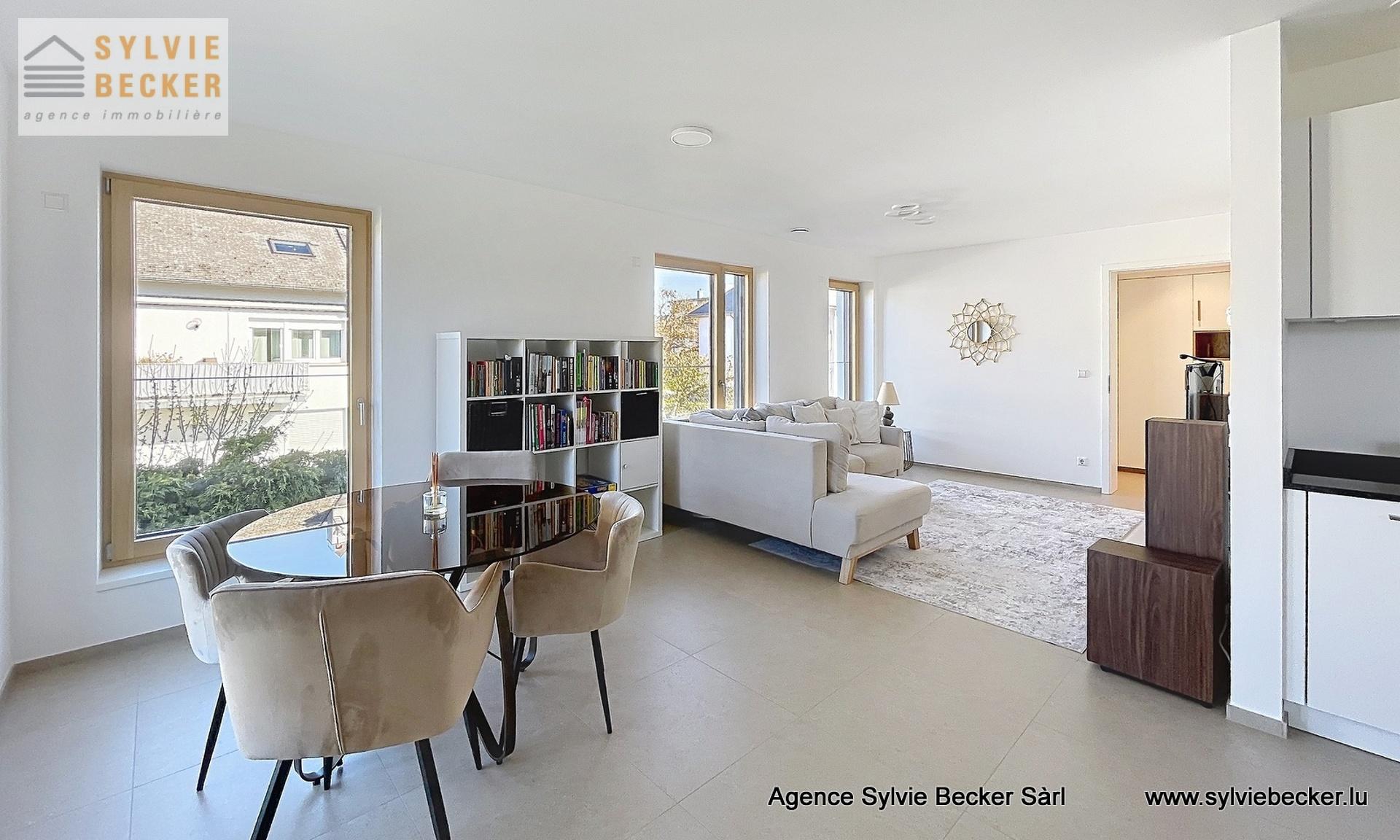 Appartement 2 chambres de 84m2 dans un immeuble de 2021 situé 2 rue de l'école à Howald, au premier étage sans ascenseur. L'appartement possède un garage pour deux voitures, un balcon de 8m2 et les locataires pourront profiter d'un jardin commun.