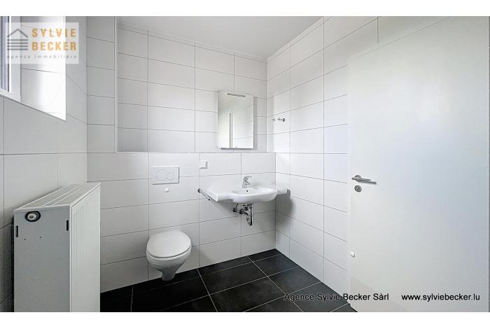 Appartement de 2 chambres au 1er étage (avec ascenseur) d'une résidence située à Frisange, 2, An der Aaluecht. Excellent niveau d'isolation et énergétique (C/C).