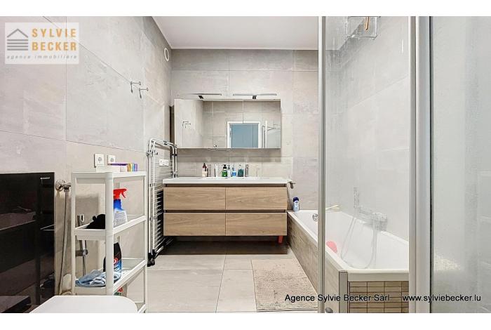 Appartement récent (2015) de 2 chambres, 2 salles de douche, avec une grande terrasse de 29m2, au sein d'un immeuble situé dans la Cité Pescher à Strassen.