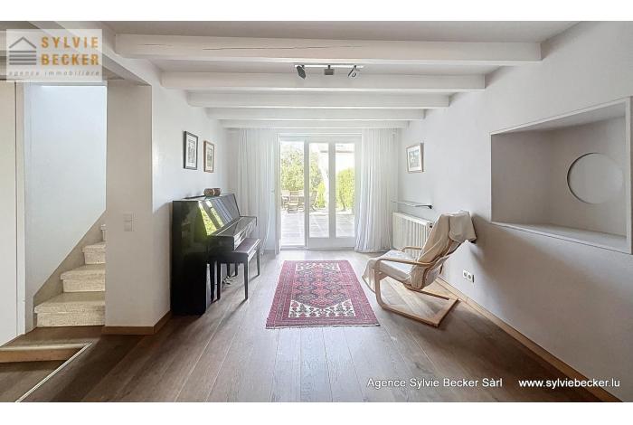 Grande maison de charme en plein centre de Canach, avec beau jardin avec arbres fruitiers (cerises, mirabelles, pommes,…). Plus de 300m2 de surface habitable sur 3 étages, idéal pour familles. A proximité de Luxembourg-Kirchberg.