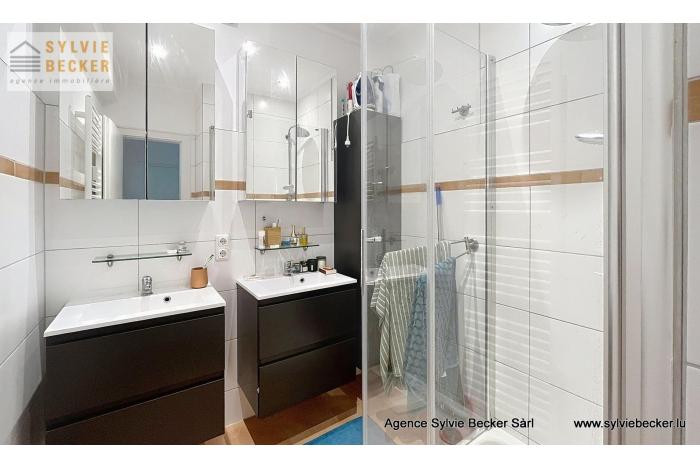 Appartement de 75m2, comprenant deux chambres, une cuisine récente avec accès balcon, situé au 1er étage d'une résidence sans ascenseur au 135, rue de Rollingergrund et à quelques minutes du centre-ville.