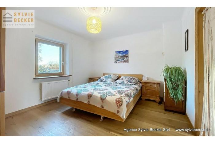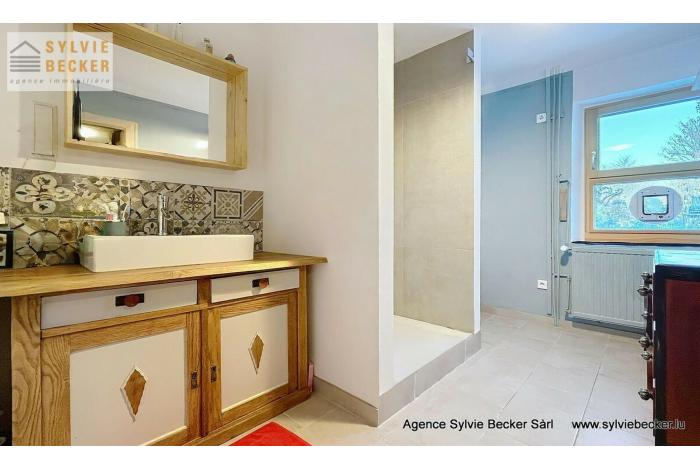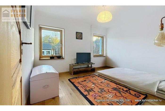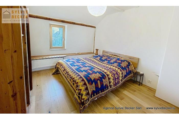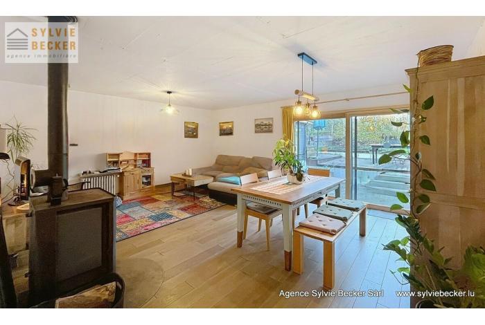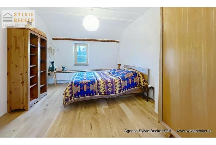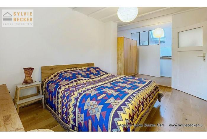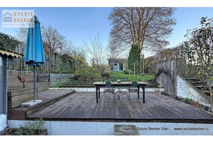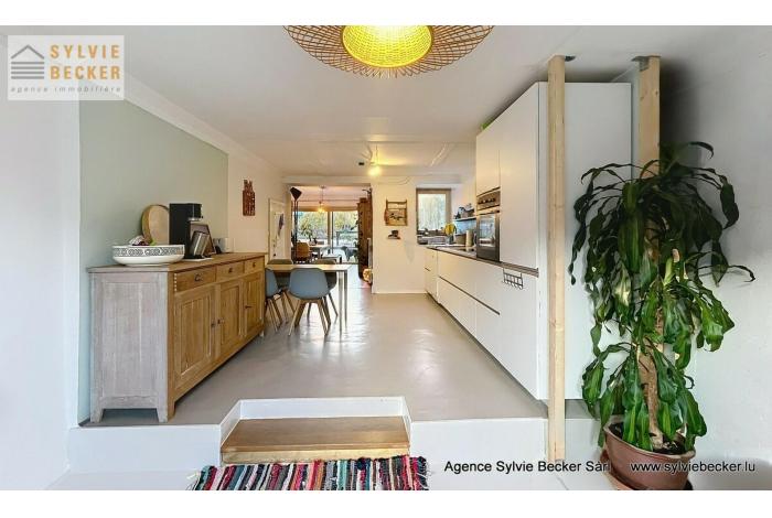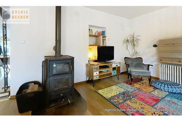 Maison de charme , mitoyenne, de 3 à 4 chambres à coucher, living avec cheminée donnant sur un beau jardin, située 17, rue Paul Eyschen, Müllendorf (commune de Steinsel). Cette maison atypique avec 2 emplacement extérieurs se situe à 20 minutes du Kirchberg et du Centre-ville de Luxembourg et à 15 minutes de Mersch et Mamer/Capellen.