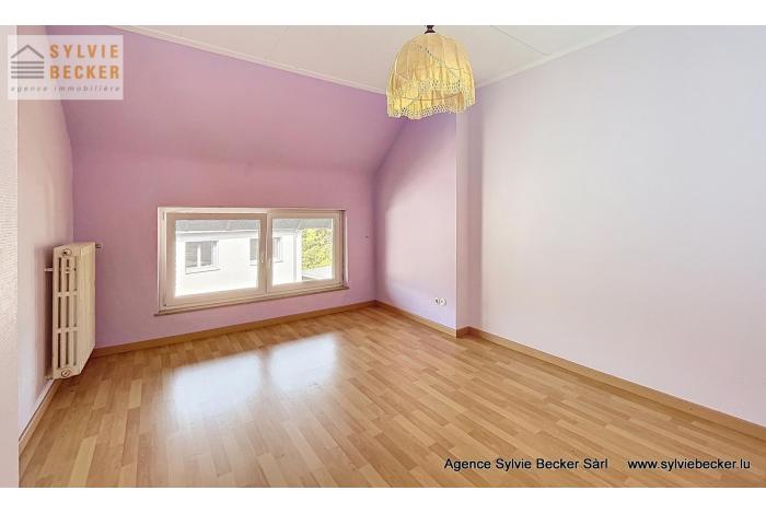 Maison 4 chambres et libre des 4 côtés située 18 rue des Carrefours à Bridel, dans une rue très calme près du campus scolaire. A proximité de la forêt, idéal pour balades, mountainbike, etc