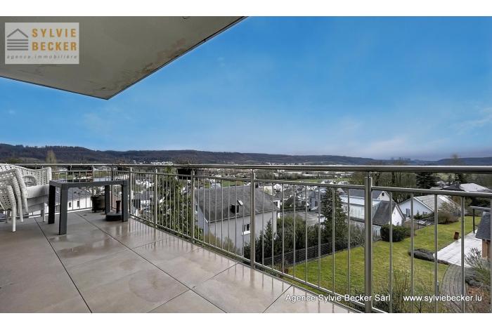 L'appartement possède une vue imprenable sur la vallée de l'Alzette, notamment depuis sa grande terrasse de 14m2 orientée sud.