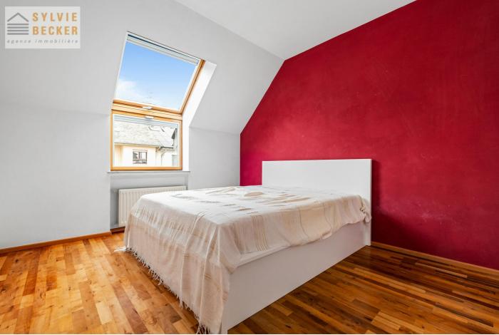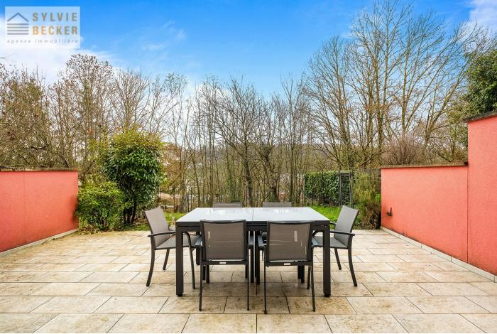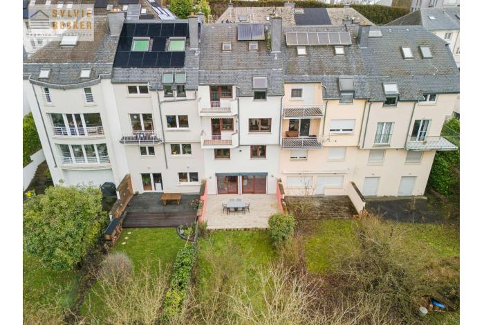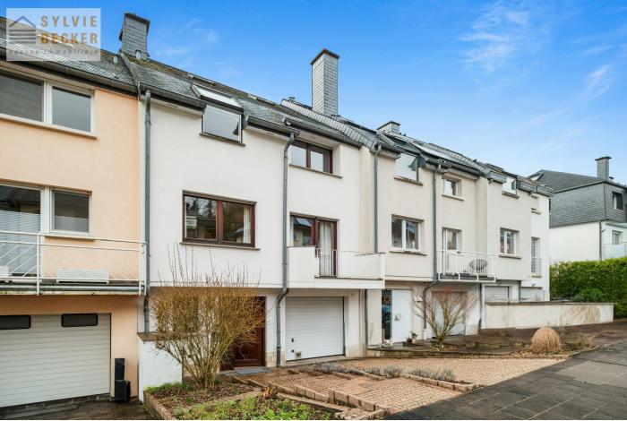 Maison mitoyenne 5 chambres située dans une rue calme et sans issue de Dommeldange (rue Paul Henkes). La maison possède un joli jardin et une grande terrasse exposés sud-ouest.