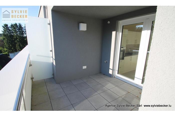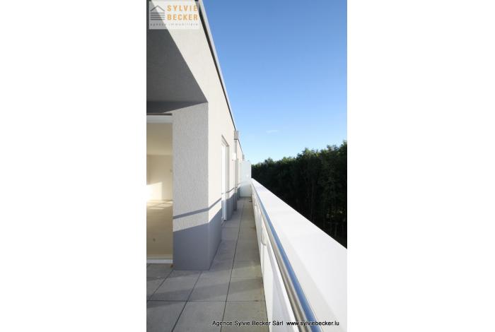 Penthouse moderne (2016, B/B) de 92m2 + terrasses 16m2 à Bridel avec vues imprenables sur forêt et vallée de l'Alzette et à 2 kilomètres du centre de Luxembourg-ville. Pour citadin amoureux de la nature.