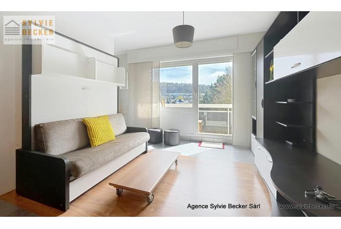 Studio (35 m²) meublé au 3ème ETAGE avec deux pièces de vivre, un balcon (5 m²), un garage box fermé et une cave, sis au 35 Rue de Bourgogne 1272 Luxembourg-Beggen.