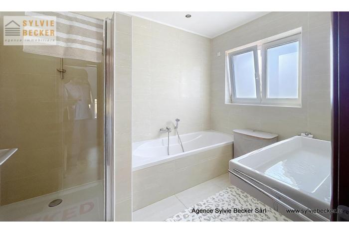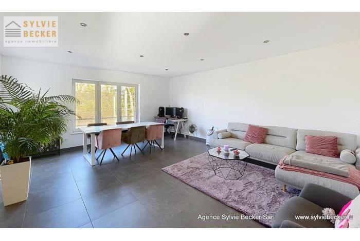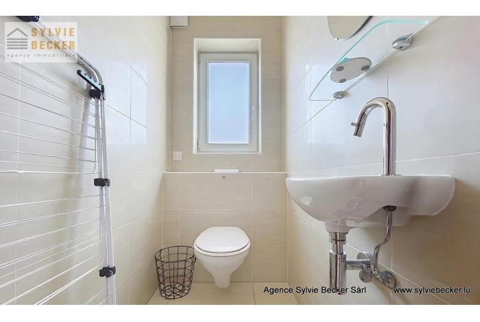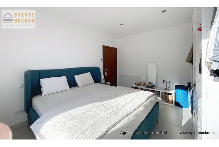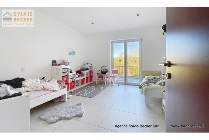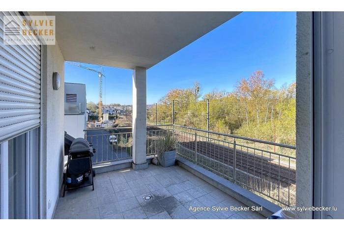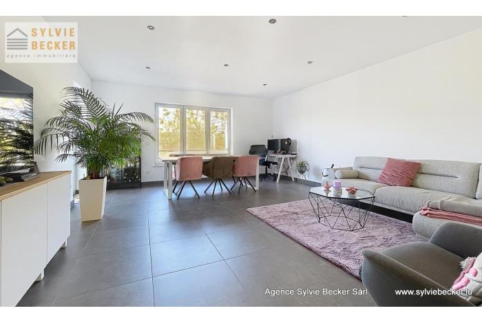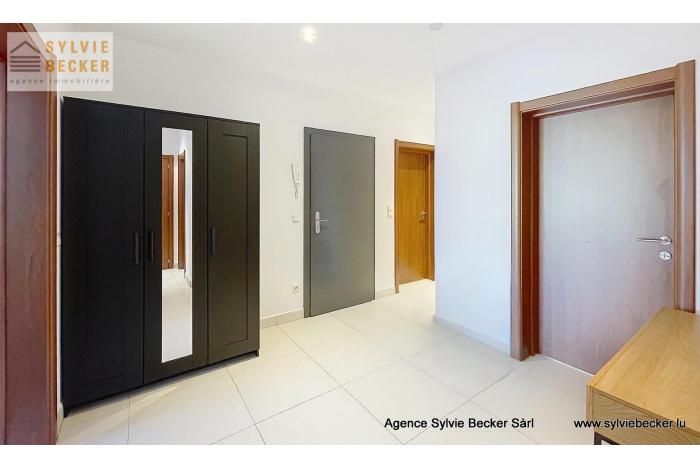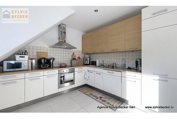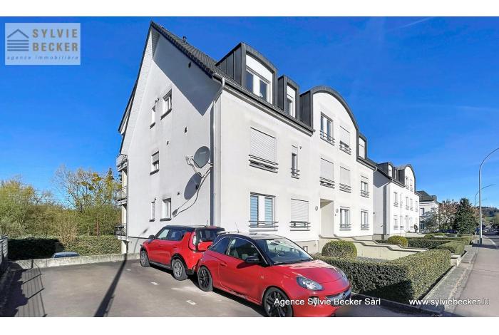 Appartement lumineux et spacieux avec 2 chambres à coucher (15m2 et 14m2) et terrasse (9m2) orientée ouest au deuxième étage d'un bâtiment à Helmdange, dans la commune de Lorentzweiler. Il dispose également un grand garage double pour deux voitures et d'une cave privative au sous-sol, ainsi qu'un grand grenier de 25m2 au troisième étage. L'appartement se trouve à 300m de la gare de Lorentzweiler.