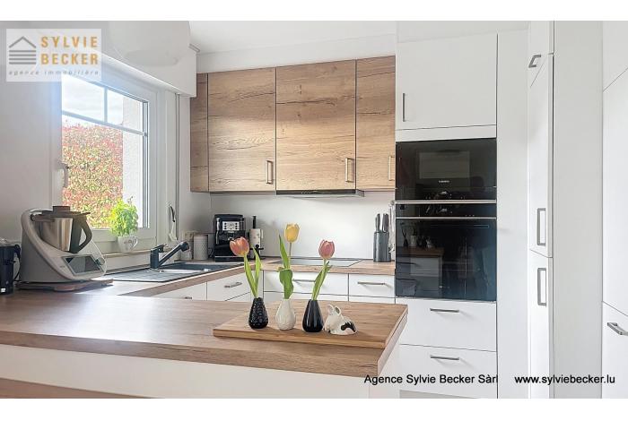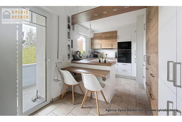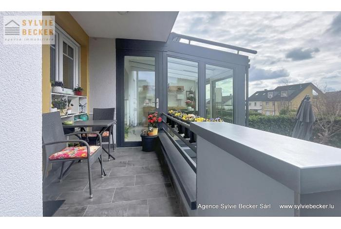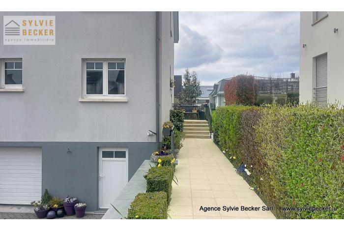 Appartement 2-3 chambres de 98m2 (+ balcon, terrasse, jardin) au sein d'une résidence de 2 unités située à Sandweiler, 3 An de Steekaulen. Rue très calme.