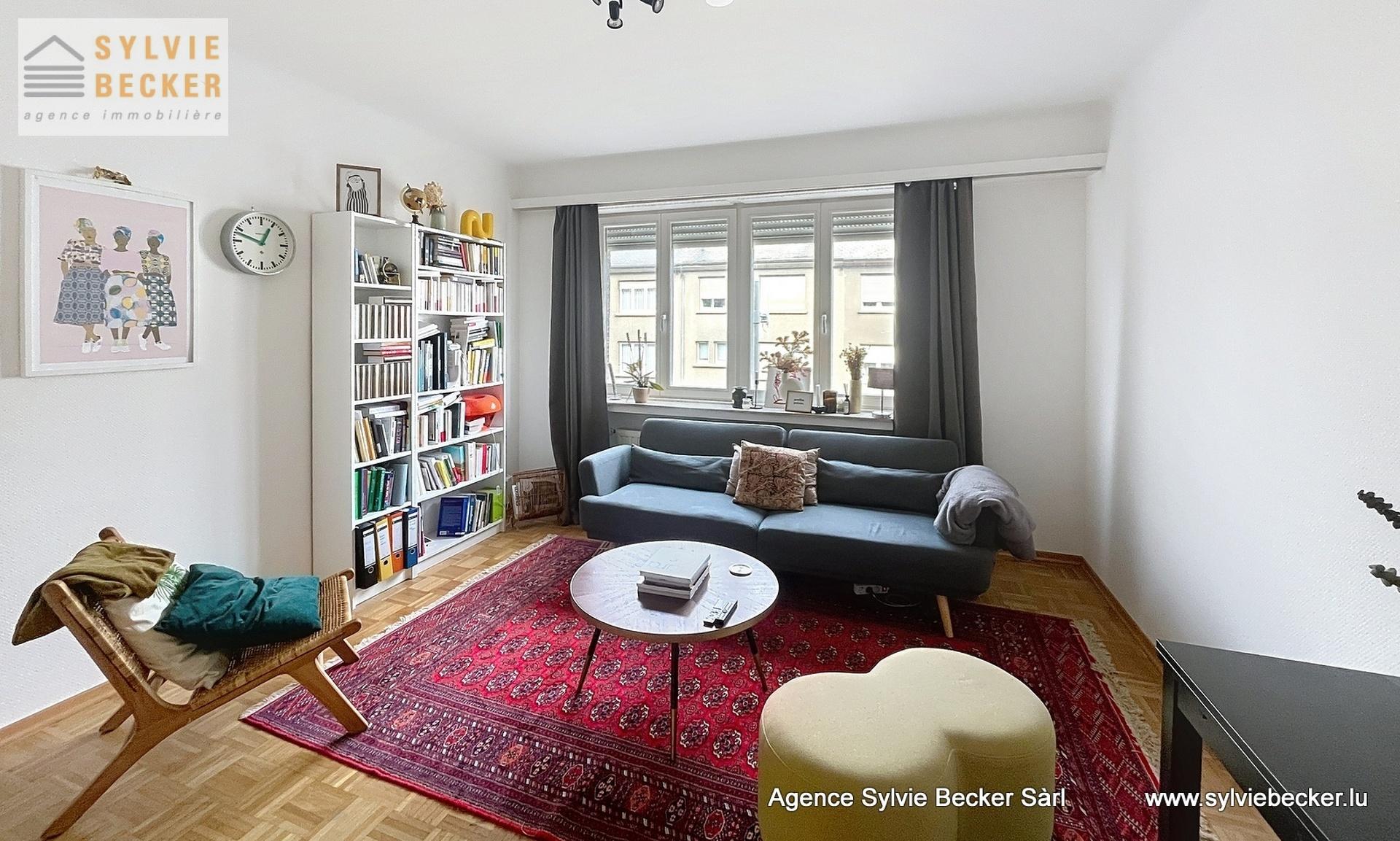 Appartement de 75m2, comprenant deux chambres, une cuisine récente avec accès balcon, situé au 1er étage d'une résidence sans ascenseur au 135, rue de Rollingergrund et à quelques minutes du centre-ville.